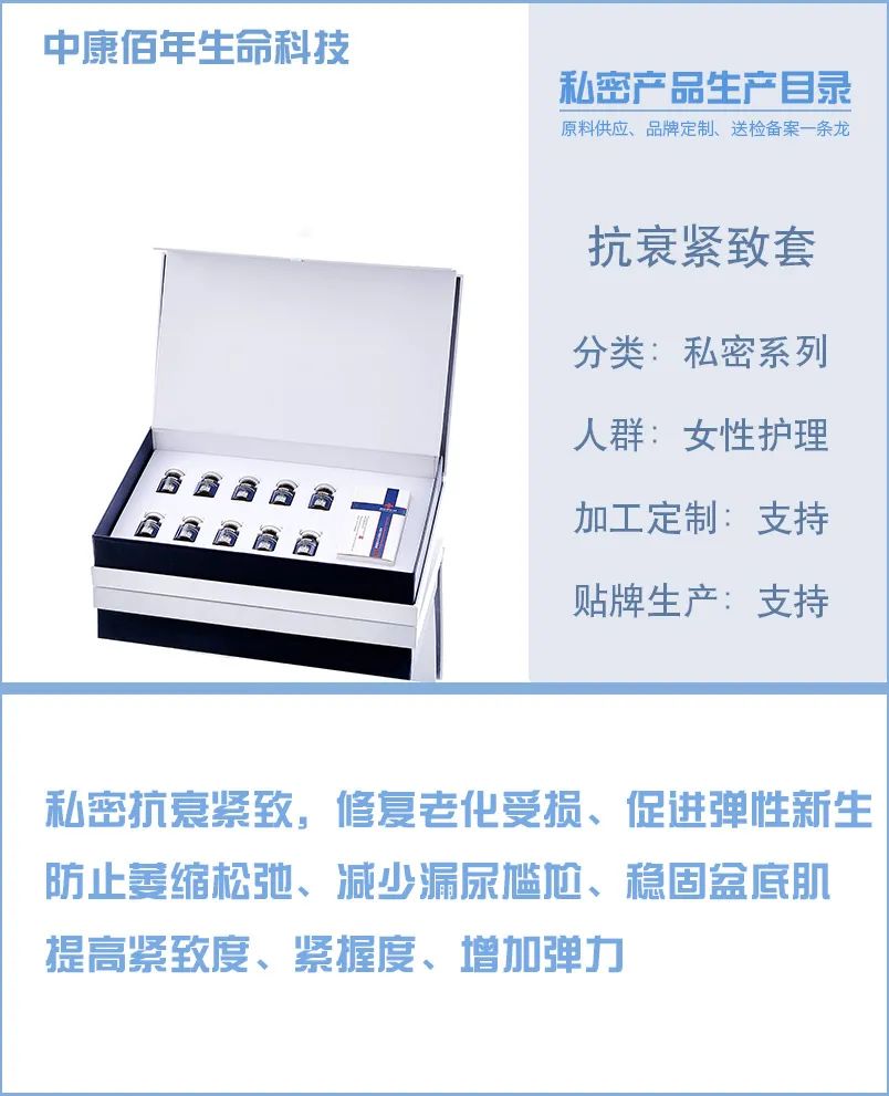 产品:私密回春抗衰紧致套 特性:本品对大肠杆菌、金黄色葡萄球菌、白色念珠菌有较高的抑菌作用,在使用时能有效防止细菌感染 规格:展示样品为10次(可根据定制需求做成各种包装) 使用方法:内塞进阴道即可。